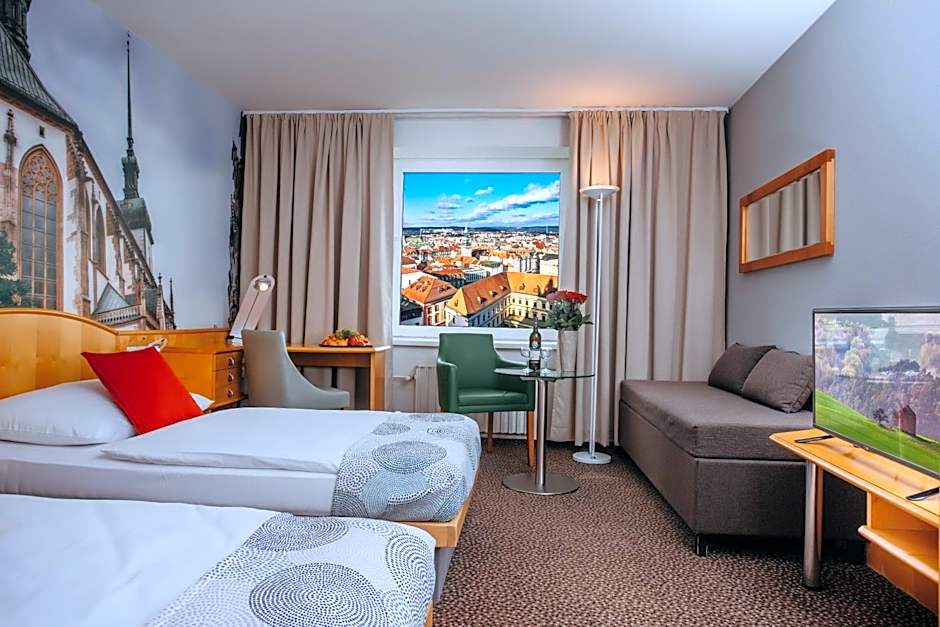 Featuring free toiletries, this triple room includes a private bathroom with a bath, a shower and a hairdryer. The spacious air-conditioned triple room features a flat-screen TV with satellite channels, a mini-bar, a tea and coffee maker, a seating area as well as city views. The unit has 2 beds.